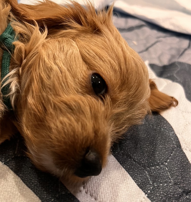 Amber - Maltipoo F1b - szczeniaczek wyraźnie poszedł po tatusiu Pudelku.